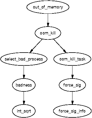 The function select_bad_process() is responsible for choosing a process to kill. It decides by stepping through each running task and calculating how suitable it is for killing with the function badness(). The badness is calculated as follows, note that the square roots are integer approximations calculated with int_sqrt();